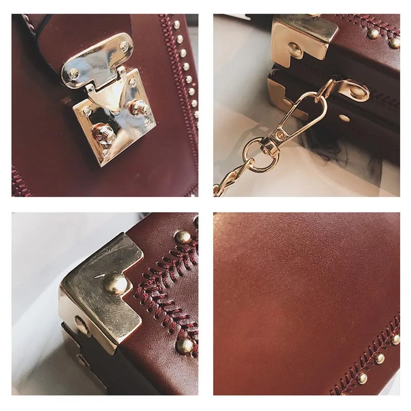 Flash Sale WOBAG High Quality Small Square Shoulder Bag Package Clutch Fashion Rivet Box Shape Crossbody Bag C